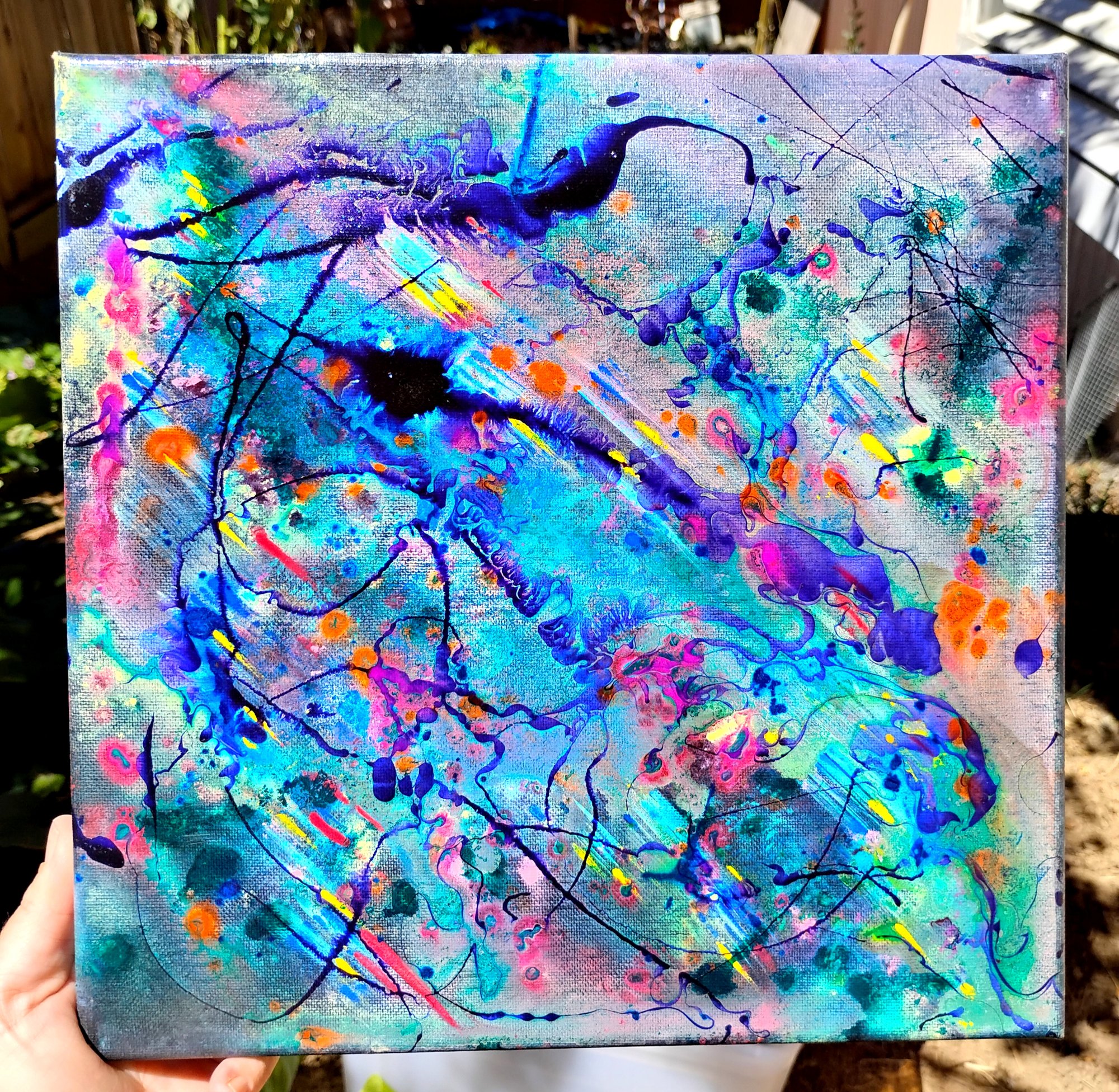 -CUSTOM- Hand-painted, one-of-a-kind. Beautiful, vibrant, unique abstract acrylic and ink on 12x12 gallery wrapped canvas! The sides of the canvas are painted so your new painting is ready to hang! The visual quality of this abstract painting is stunning in both indoor, and natural light. It is varnished to protect from UV damage. Each painting purchased comes signed and dated verifying that this is an original piece of art created by me.
