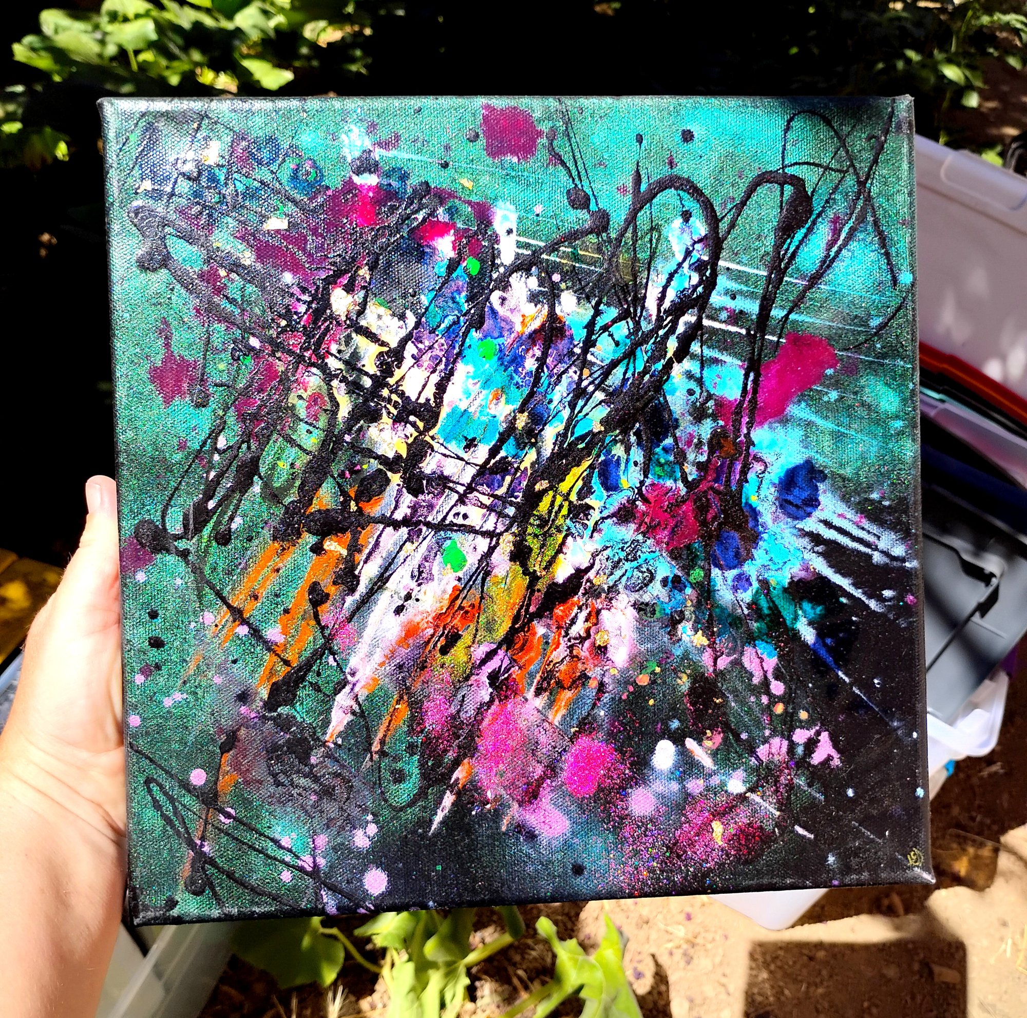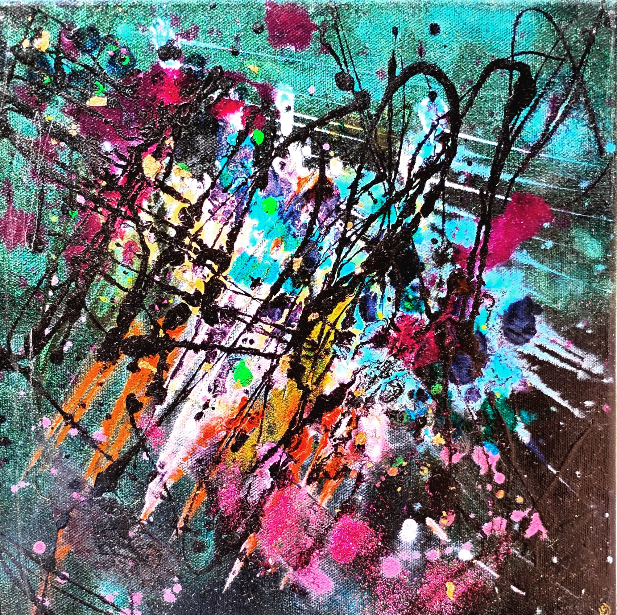 -CUSTOM- Hand-painted, one-of-a-kind. Beautiful, vibrant, unique abstract acrylic and ink on 12x12 gallery wrapped canvas! The sides of the canvas are painted so your new painting is ready to hang! The visual quality of this abstract painting is stunning in both indoor, and natural light. It is varnished to protect from UV damage. Each painting purchased comes signed and dated verifying that this is an original piece of art created by me.