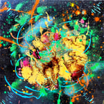 My paintings are about lots of color and overwhelming the eyes. I want the viewer to notice new details with every fresh look, experiencing a range of emotions and unable to look away from the piece. My favorite materials to use: acrylic, ink, gold foil, glitter.